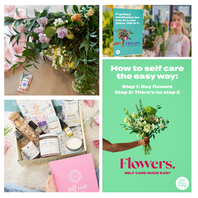 Leverage assets from That Flower Feeling by using the available predesigned in store signage. Share the pre existing social media campaigns and offer That Flower Feeling bouquets to help promote self-care purchases. Consider a contribution to That Flower Feeling to support their on going industry wide marketing efforts. It truly is an investment in yourself!